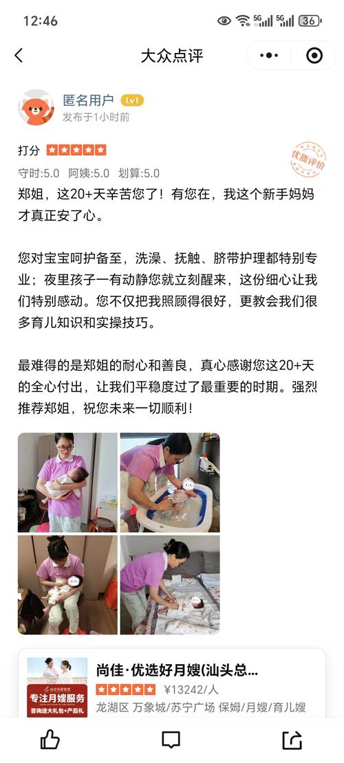 慧玲,性格溫和,勤勞認(rèn)真,有從事母嬰多年的護(hù)理工作經(jīng)驗(yàn),能準(zhǔn)確地讀懂寶寶的需求,幫多個(gè)寶媽量身搭配了營養(yǎng)科學(xué)月子餐,深受寶媽喜愛。